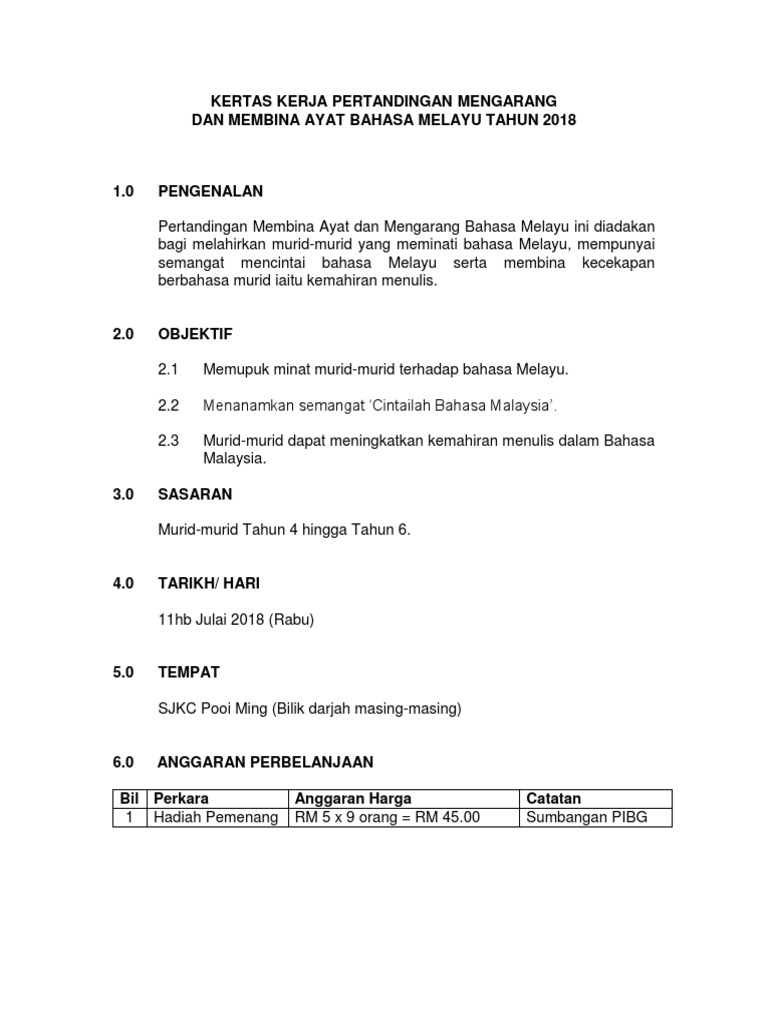Kertas Kerja Pertandingan Bina Ayat Mengarang Pdf